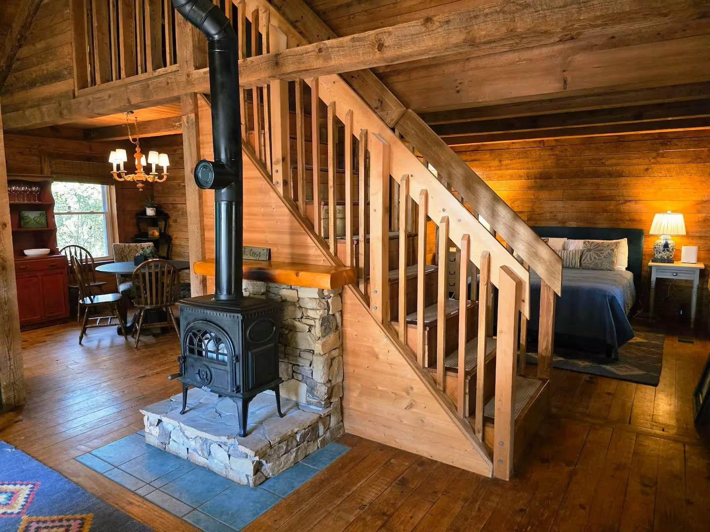 This true log cabin is almost 40 year old. A couple of years ago, we gave it some love: new kitchen, updated bathrooms, cozy furniture. A man named Steve Shepherd moved in and made it into a warm and wonderful home. We think you’ll feel the good vibes, too. But be forewarned: this cabin feels so good that you’ll want to stay longer.
